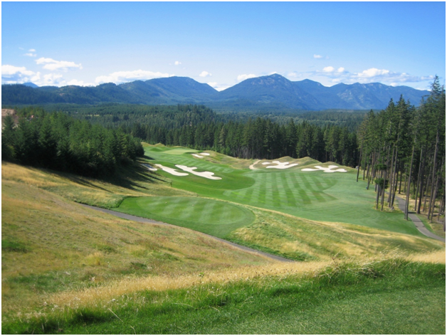 We also found some good golf options in the area including Chambers Bay the home of the 2010 U.S. Amateur. Another gem up in the mountains to the east of Seattle is Suncadia. We played the Prospector; it was great. Here is a picture of the 10th hole; one of the most spectacular driving holes in memory.